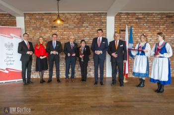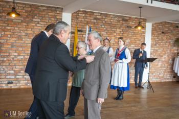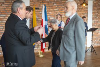 Medale, listy gratulacyjne oraz kwiaty i życzenia mieszkańcom Miasta Gorlice wręczyli Burmistrz Rafał Kukla, Przewodniczący Rady Miasta Robert Ryndak, Zastępca Burmistrza Sebastian Puchajda, Sekretarz Miasta Daniel Janeczek oraz Kierownik Urzędu Stanu Cywilnego i Spraw Obywatelskich w Gorlicach Małgorzata Bałajewicz.