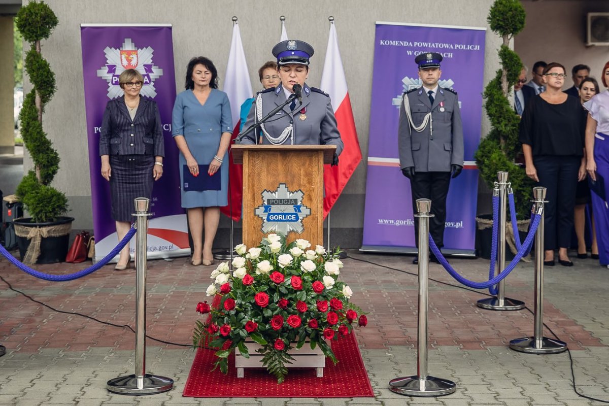 W okolicznościowym przemówieniu Komendant Powiatowy Policji w Gorlicach podziękowała gościom za współpracę i zaangażowanie na rzecz bezpieczeństwa mieszkańców powiatu gorlickiego. W słowach skierowanych do policjantów i pracowników Policji podziękowała za rzetelną oraz sumienną służbę i pracę. Życzyła zebranym i ich rodzinom wszelkiej pomyślności w życiu zawodowym i osobistym.