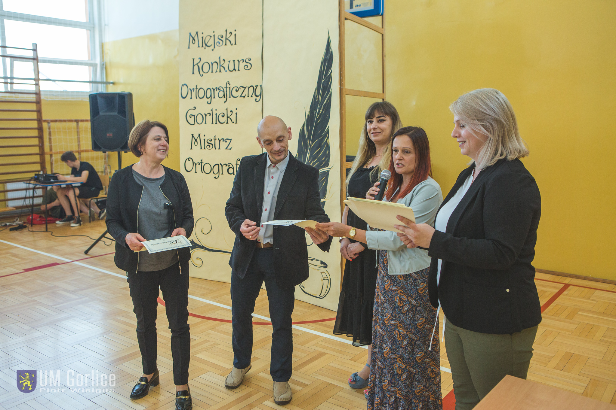 Nagrody dla mistrzów ortografii wręczyli w imieniu Burmistrza Rafała Kukli, jego Zastępca Łukasz Bałajewicz oraz Kierownik Wydziału Oświaty, Kultury i Promocji Urzędu Miejskiego w Gorlicach Wojciech Zapłata.