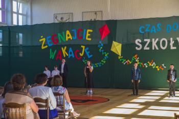 Na zakończenie uroczystości, po przecięciu wstęgi na boisku sportowym, którego dokonali uczniowie szkoły, goście oddali symboliczny, pierwszy strzał na bramkę.