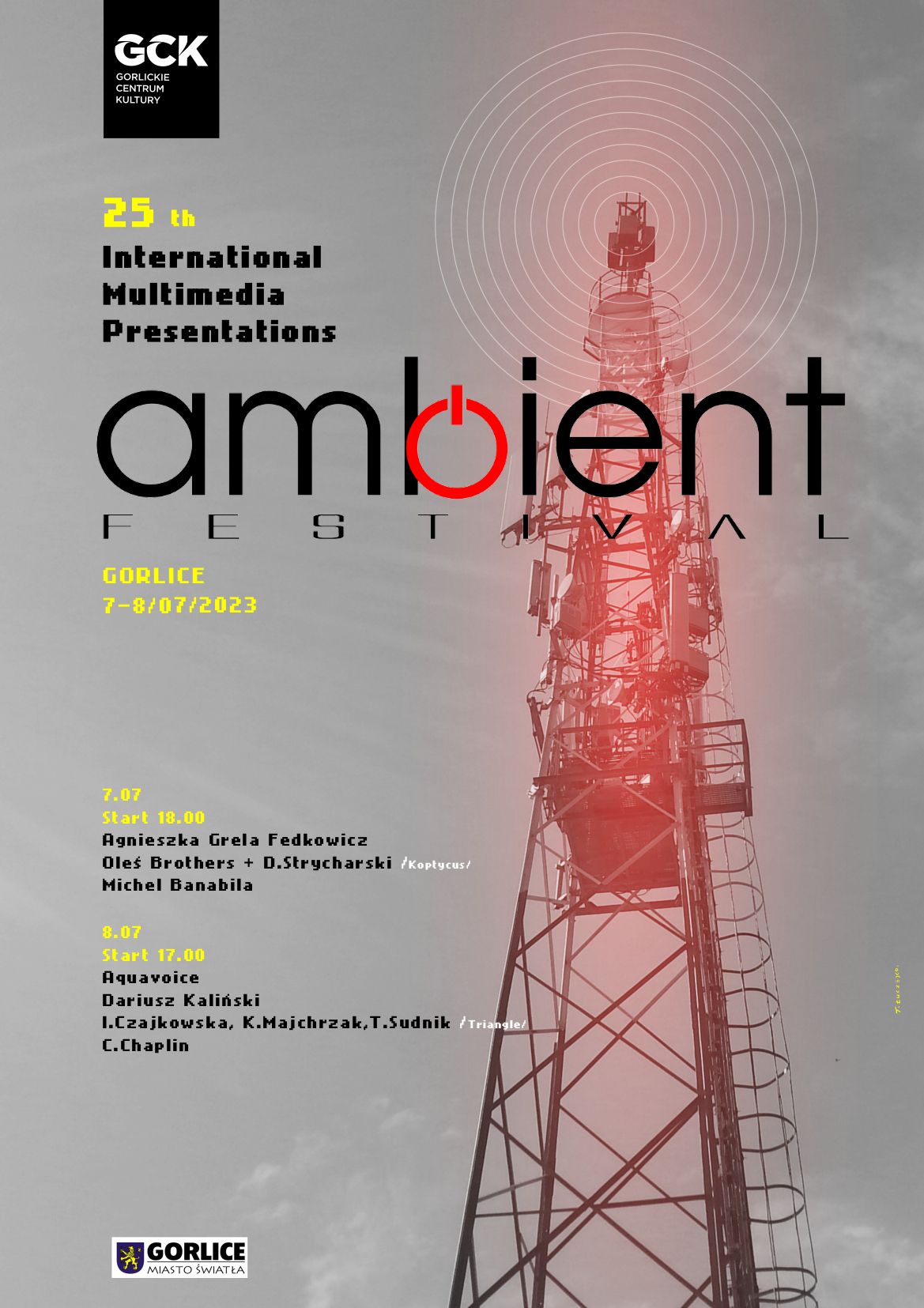 Gorlickie Centrum Kultury serdecznie zaprasza na 25. Międzynarodowe Prezentacje Multimedialne Ambient Festival, które odbędą się w dniach 7-8 lipca 2023 roku. Ze względu na trwającą rewitalizację budynku GCK festiwal odbywać się będzie w auli Centrum Kształcenia Praktycznego i Ustawicznego w Gorlicach (ul. 11 listopada 43).