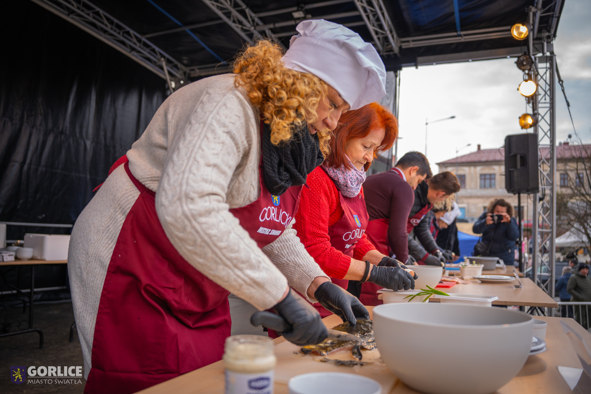 W samo południe rozpoczął się konkurs kulinarny „Gorlicki Mistrz Smaku”, w którym zmierzyły się 3 drużyny: Miasta Gorlice, Powiatu Gorlickiego oraz reprezentanci gorlickich Zarządów Osiedli. W tym roku daniem konkursowym były faworki z karpia z sosem.