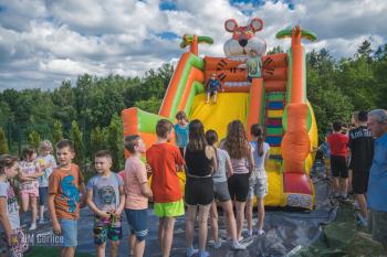 Nie zabrakło kiełbasek z grilla, cukrowej waty oraz dmuchanego placu zabaw.