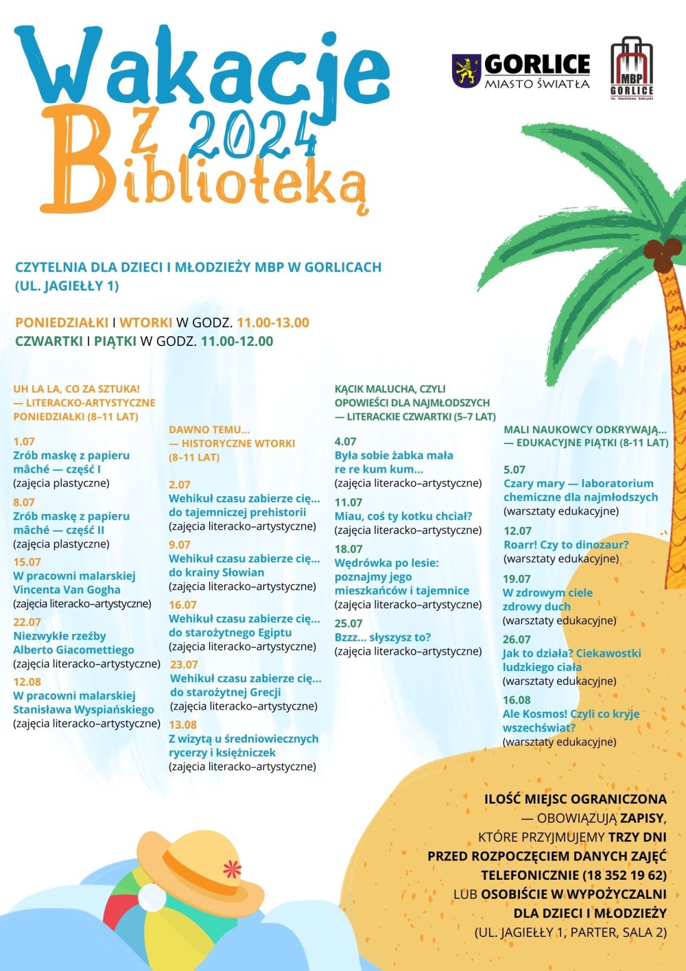 Miejska Biblioteka Publiczna w Gorlicach zaprasza dzieci i młodzież na bezpłatne zajęcia animacyjne organizowane w ramach akcji Wakacje z Biblioteką 2024.