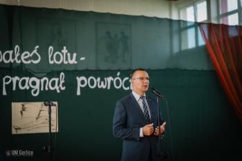 Po wprowadzeniu sztandaru i odśpiewaniu Hymnu, zgormadzonych w murach szkoły gości powitał Dyrektor Miejskiego Zespołu Szkół nr 4 Aleksander Kumorkiewicz.