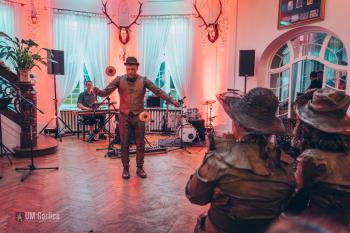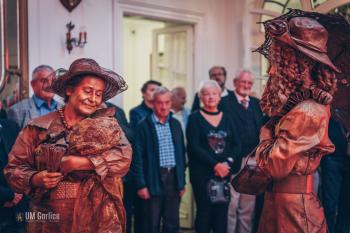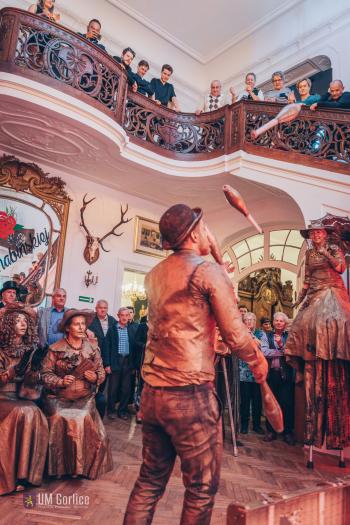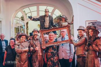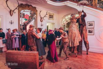 Muzyka na żywo w wykonaniu zespołu retro przeniosła nas w świat przedwojennego kina. Byliśmy świadkami spektaklu Grupy Locomotora z Krakowa oraz tańca z ogniem teatru ERGO, a dzięki strojom z epoki, każdy mógł poczuć się jak uczestnik międzywojennego balu. To wszystko w pięknym otoczeniu zabytkowego Pałacu Długoszów.
