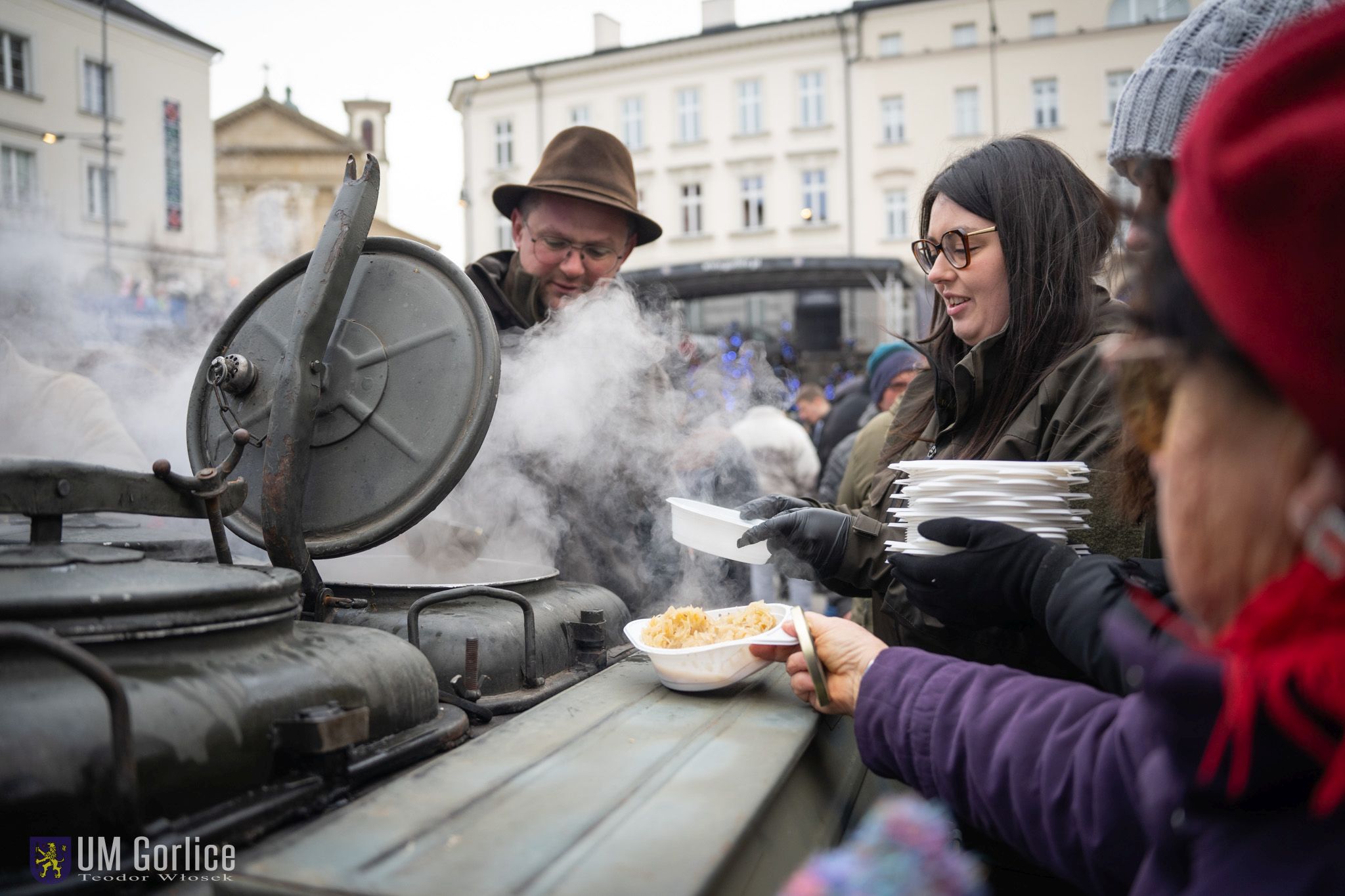 Po symbolicznym przełamaniu się opłatkiem, zgromadzeni na Rynku gorliczanie, w atmosferze życzliwości, wspólnie zjedli symboliczny posiłek wigilijny.