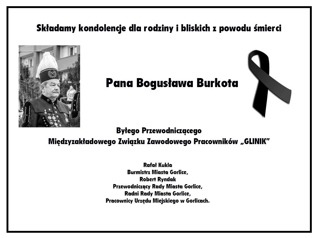Pogrążonej w smutku rodzinie i bliskim, szczere kondolencje składają: Burmistrz Miasta Gorlice Rafał Kukla, Przewodniczący Rady Miasta Robert Ryndak, Radni Rady Miasta Gorlice oraz pracownicy Urzędu Miejskiego w Gorlicach.