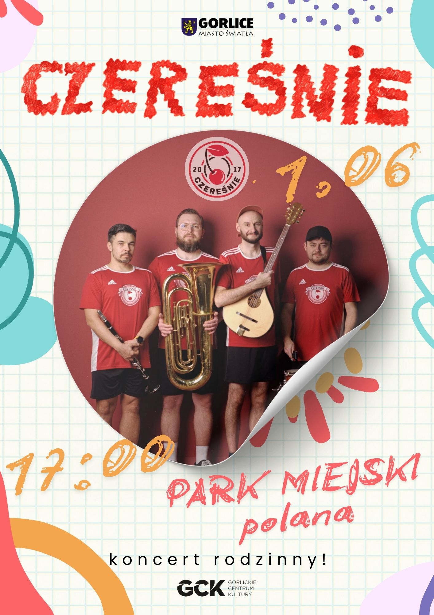 To nie będzie zwykły koncert! To będzie eksplozja dźwięków i rytmów z prawdziwymi instrumentami: perkusją, gitarami, bandżo, klarnetem, a nawet tubą! Czereśnie to najbardziej energetyczny zespół dziecięcy w Polsce, który już 1 czerwca, o 17:00 rozkołysze całą gorlicką Arenę i porwie do wspólnej zabawy małych i dużych. Zapraszamy tego dnia do Areny Gorlice – już od 13:30 będziemy świętować też Gorlicki Dzień Rodziny oraz XV Dzień Osób z Niepełnosprawnościami – atrakcji dla wszystkich nie zabraknie!