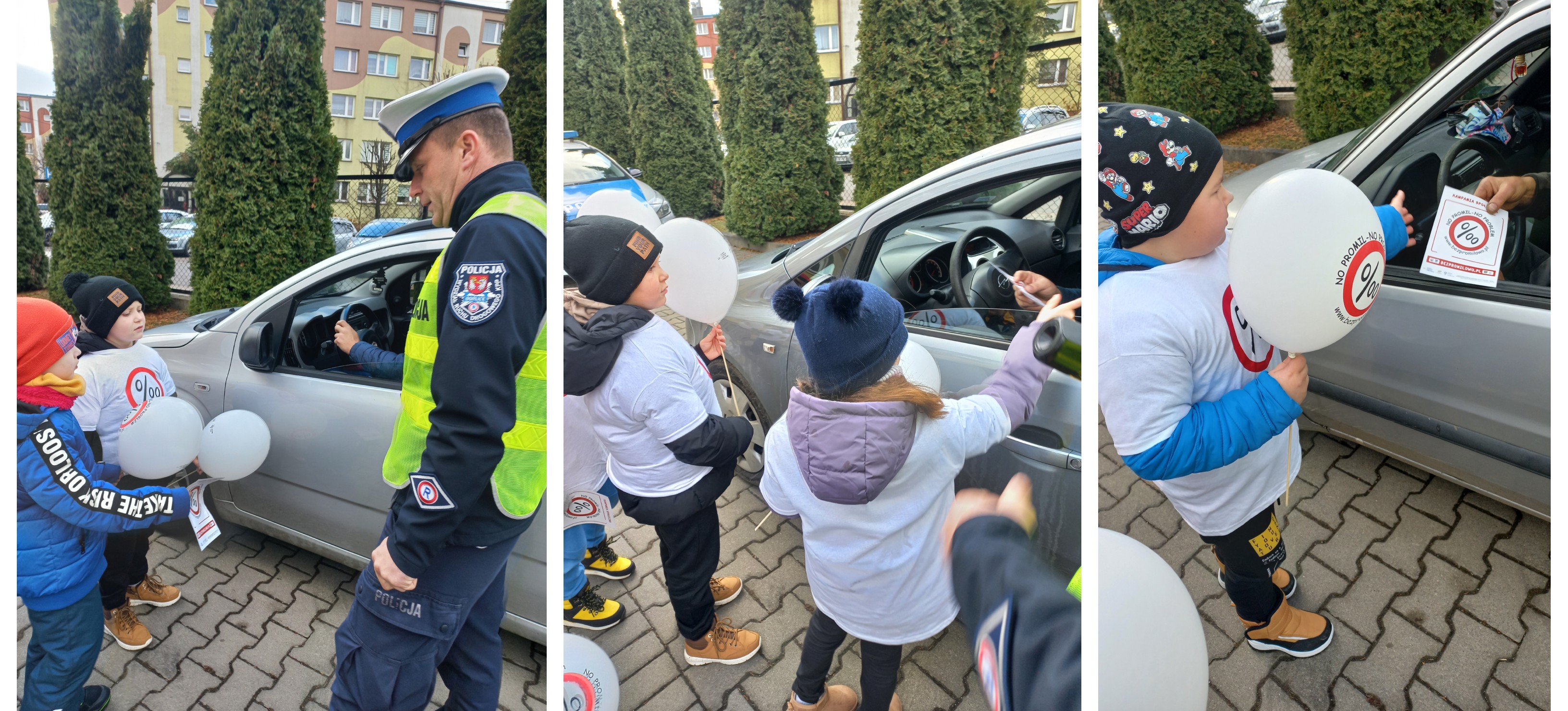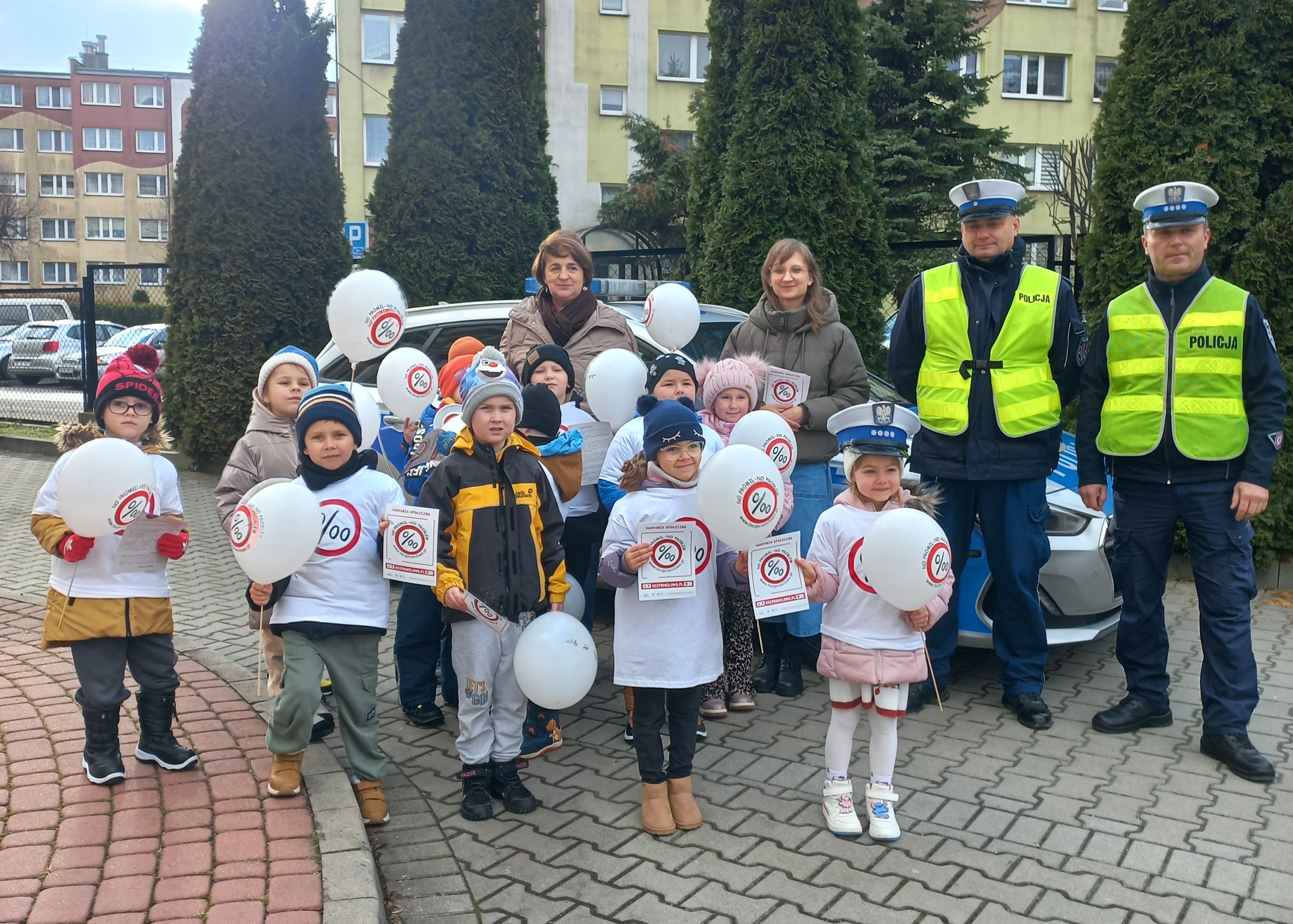 Po występie dzieci wzięły udział w kolejnej części akcji. Pod budynkiem MZS nr 4 policjanci prowadzili kontrolę trzeźwości kierowców, a najmłodsi pomagali w działaniach profilaktycznych, wręczając kierowcom specjalne ulotki promujące hasło „No Promil – No Problem”. Dzięki temu mogły aktywnie włączyć się w promowanie odpowiedzialnych zachowań na drodze.