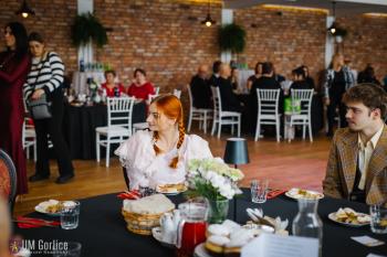 Po uroczystym powitaniu i okolicznościowych przemówieniach nadszedł czas na rozpoczęcie balu – goście wspólnie zatańczyli poloneza. Nie zabrakło też zabaw i muzyki na żywo.