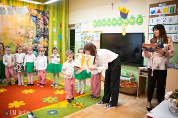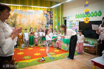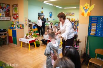 Podczas wydarzenia wręczono także nagrody w przedszkolnym konkursie na najpiękniejszą pisankę, doceniając kreatywność i zaangażowanie dzieciaków.