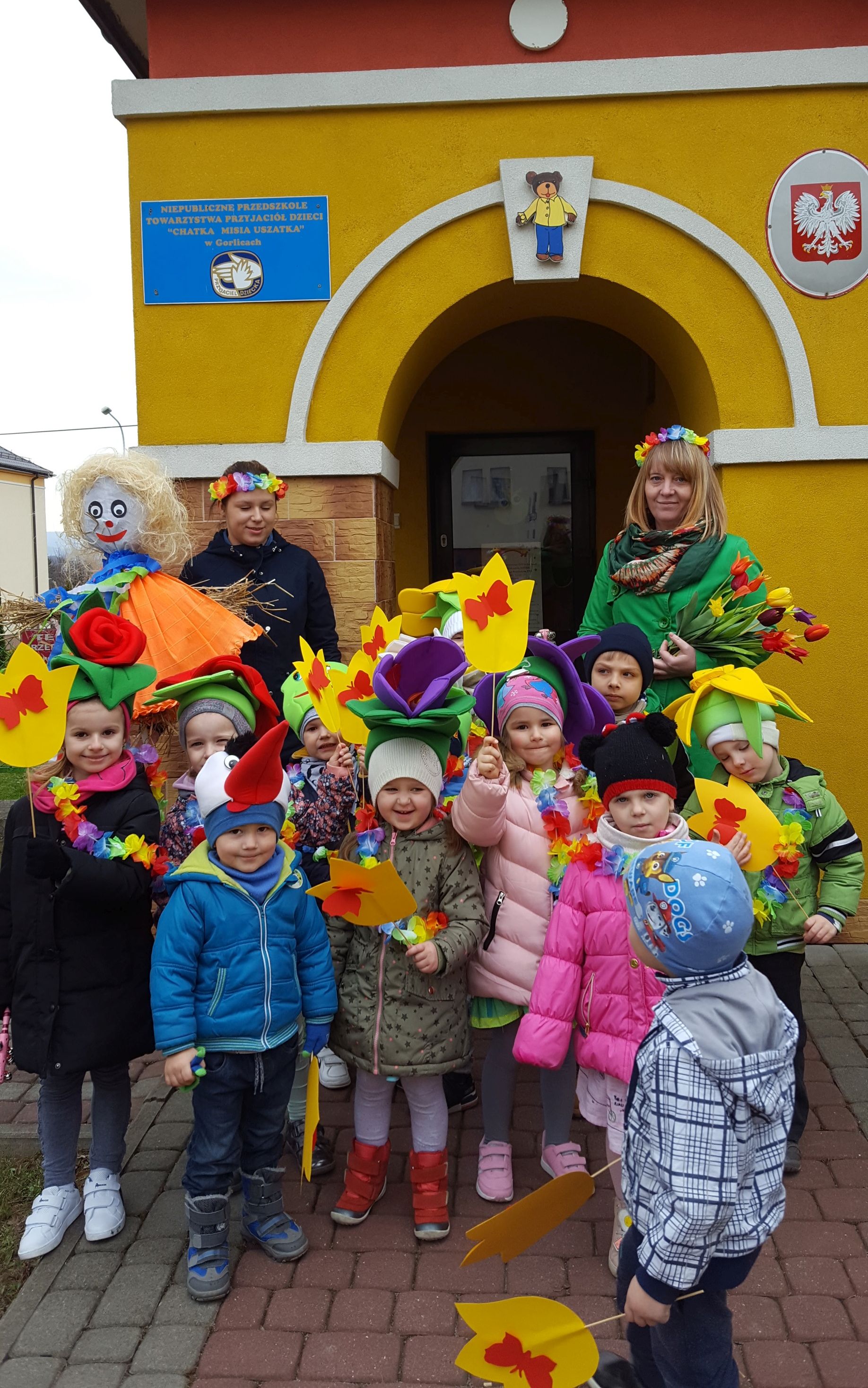 W przedszkolu „Chatka Misia Uszatka” przygotowania do pożegnania zimy i powitania wiosny, zaczęły się kilka dni wcześniej. Zmieniła się dekoracja przedszkola z zimowej na wiosenną. W sali zazielenił się kącik przyrody. Dzieci podlewały wiosenne kwiaty, rzeżuchę oraz cebulę. Nie zabrakło również prac plastycznych, dotyczących pierwszych zwiastunów wiosny.