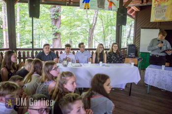 Na wspólnym spotkaniu, które miało miejsce w altanie, w przylegającym do szkoły parku, nie zabrakło gości: Kierownika Wydziału Oświaty, Kultury i Spraw Społecznych Aleksandra Augustyna, Ekodoradcy Urzędu Miejskiego w Gorlicach oraz przedstawiciela Nadleśnictwa Gorlice.