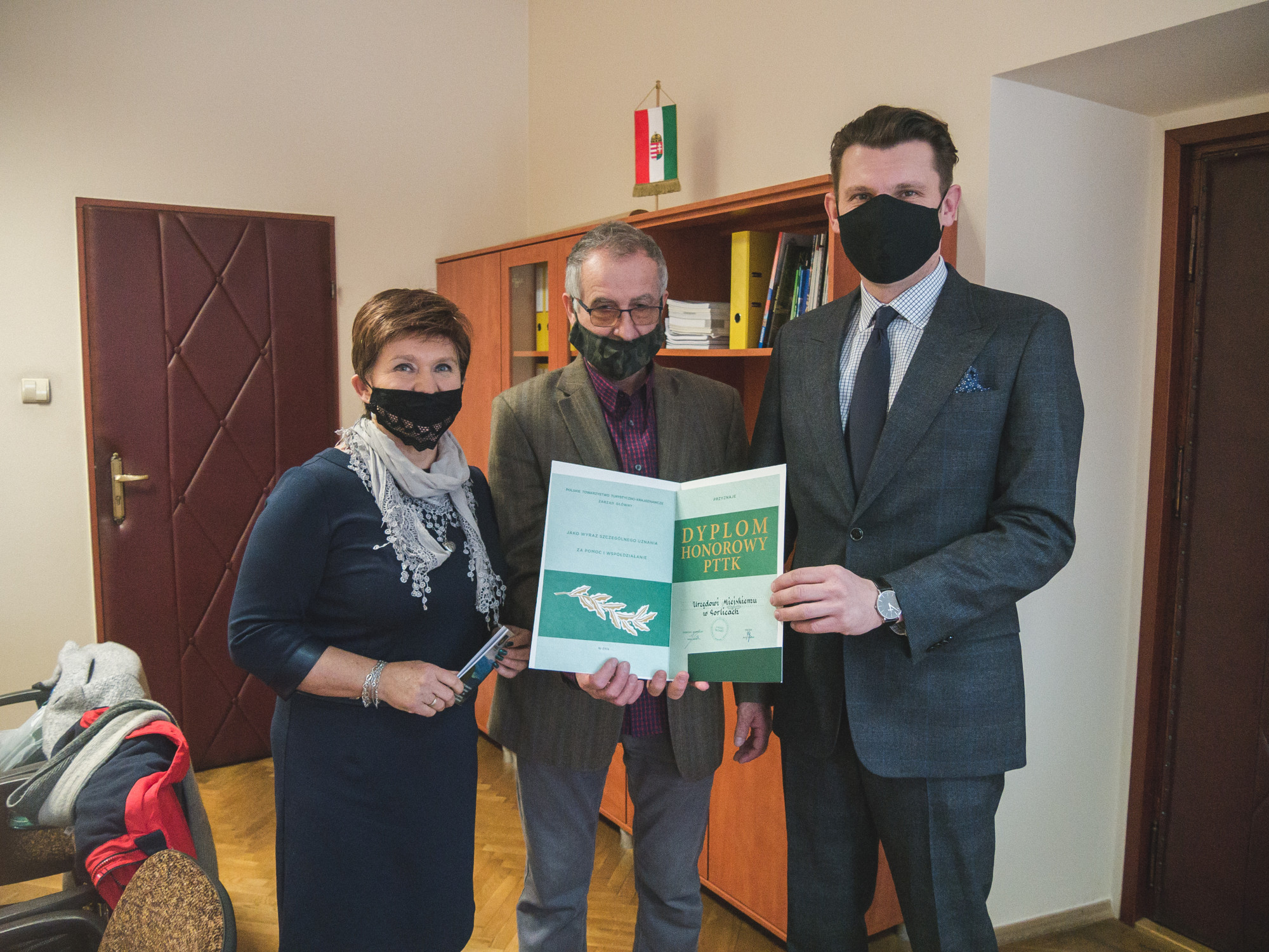 Burmistrz Miasta Gorlice Rafała Kukla otrzymał dziś (8.02) Honorowy Dyplom Zarządu Głównego PTTK, dla Urzędu Miejskiego. Wyróżnienie za pomoc i współdziałanie wręczyli Wiceprezes Zarządu PTTK w Gorlicach Henryk Szymański oraz Sekretarz Ewa Magiera.