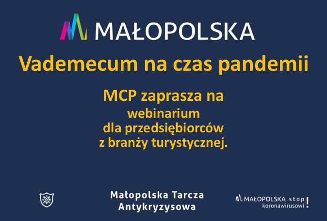 Już 30 kwietnia o godzinie 10:00 Małopolskie Centrum Przedsiębiorczośći zaprasza przedsiębiorców z branży turystycznej do udziału w webinarium dotyczącym aktualnych form pomocy na utrzymanie płynności finansowej dla sektora turystyki, który odniósł straty wskutek pandemii COVID-19!