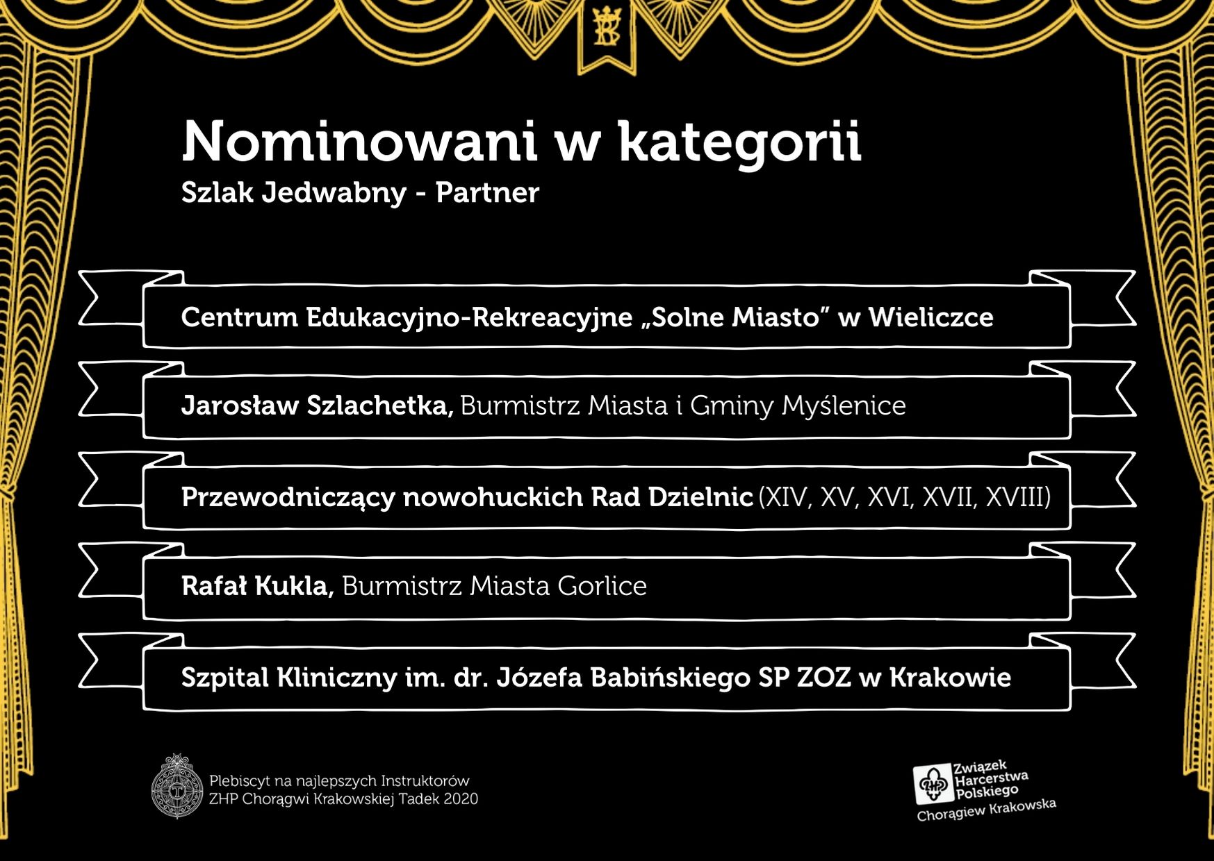 W tej kategorii nominowanymi mogą być osoby, firmy lub instytucje, które wspierają Związek Harcerstwa Polskiego Chorągiew Krakowską, jej hufce lub agendy w całorocznej działalności, bądź też przy organizacji różnych przedsięwzięć harcerskich.