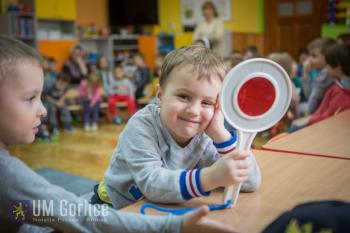 W czasie zajęć wykorzystano zestaw edukacyjny Autochodzik, dzięki któremu poprzez zabawę dzieci uczą się zasad bezpiecznego poruszania się po drodze. Możliwość założenia na siebie piankowych samochodów i symulacja różnych sytuacji panujących na drodze była dla nich świetną zabawą, połączoną z elementami procesu dydaktycznego.