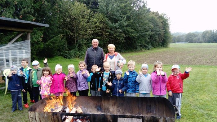 Przy słonecznej pogodzie przyjemny był również spacer ścieżką wzdłuż rzeki Ropy i przejście przez ławę. Na zakończenie wszystkim smakowała kiełbaska z grilla. Rozpromienione twarze dzieci świadczyły o tym, że naprawdę świetnie się bawiły.