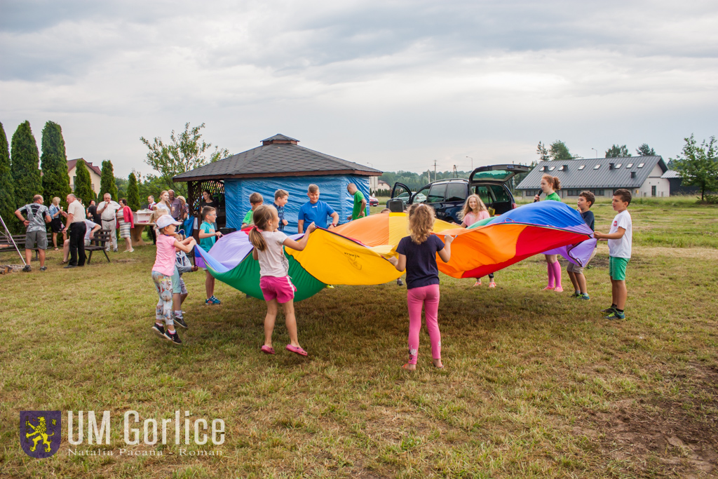 Na uczestników czekała moc atrakcji. Dzieci mogły skorzystać z zabaw, które prowadzili animatorzy, a także wziąć udział w grach i konkurencjach sportowych. Na wszystkich chętnych czekał także pyszny poczęstunek – m.in. wyśmienite lody przygotowane przez Panią Danutę Szpyrkę czy kiełbaski z grilla.