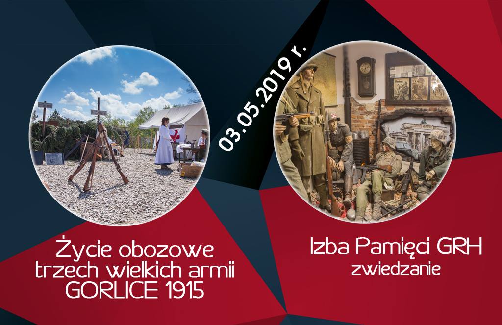 Od godziny 12:00 dla wszystkich odwiedzających dostępne będzie obozowisko wojskowe (miasteczko frontowe) odtwarzające realia, w jakich żołnierze trzech wielkich armii – niemieckiej, austrowęgierskiej i rosyjskiej – przygotowywali się do Bitwy Gorlickiej, jednej z najważniejszych bitew frontu wschodniego I wojny światowej, która rozegrała się 2 maja 1915 r. Będzie można zobaczyć m.in. lazaret, kuchnie polową, oraz ok. 50 rekonstruktorów w mundurach i strojach z epoki. Eksponaty militarne, pokaz musztry wojskowej, ćwiczenia oraz przemarsze patroli wojskowych - to wszystko czeka na odwiedzających gorlicki Rynek. Dla chętnych znajdzie się nawet pieczony prosiak! Wydarzenie na fb.