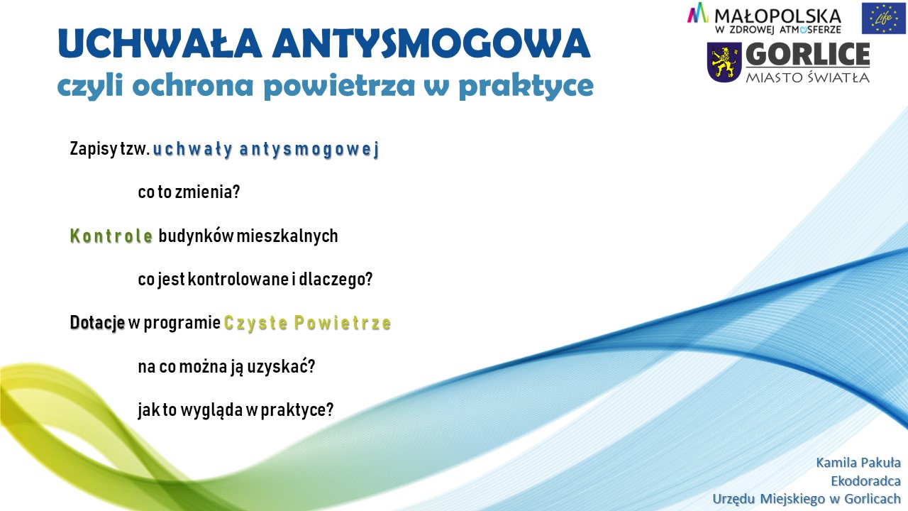 Na spotkaniu Ekodoradca poruszyła tematykę związaną z obowiązującą od 1 lipca 2017 roku Uchwałą Antysmogową oraz jej okresami przejściowymi, kontrolami zapisów uchwały a także dotacjami do wymiany kotłów i dociepleń.