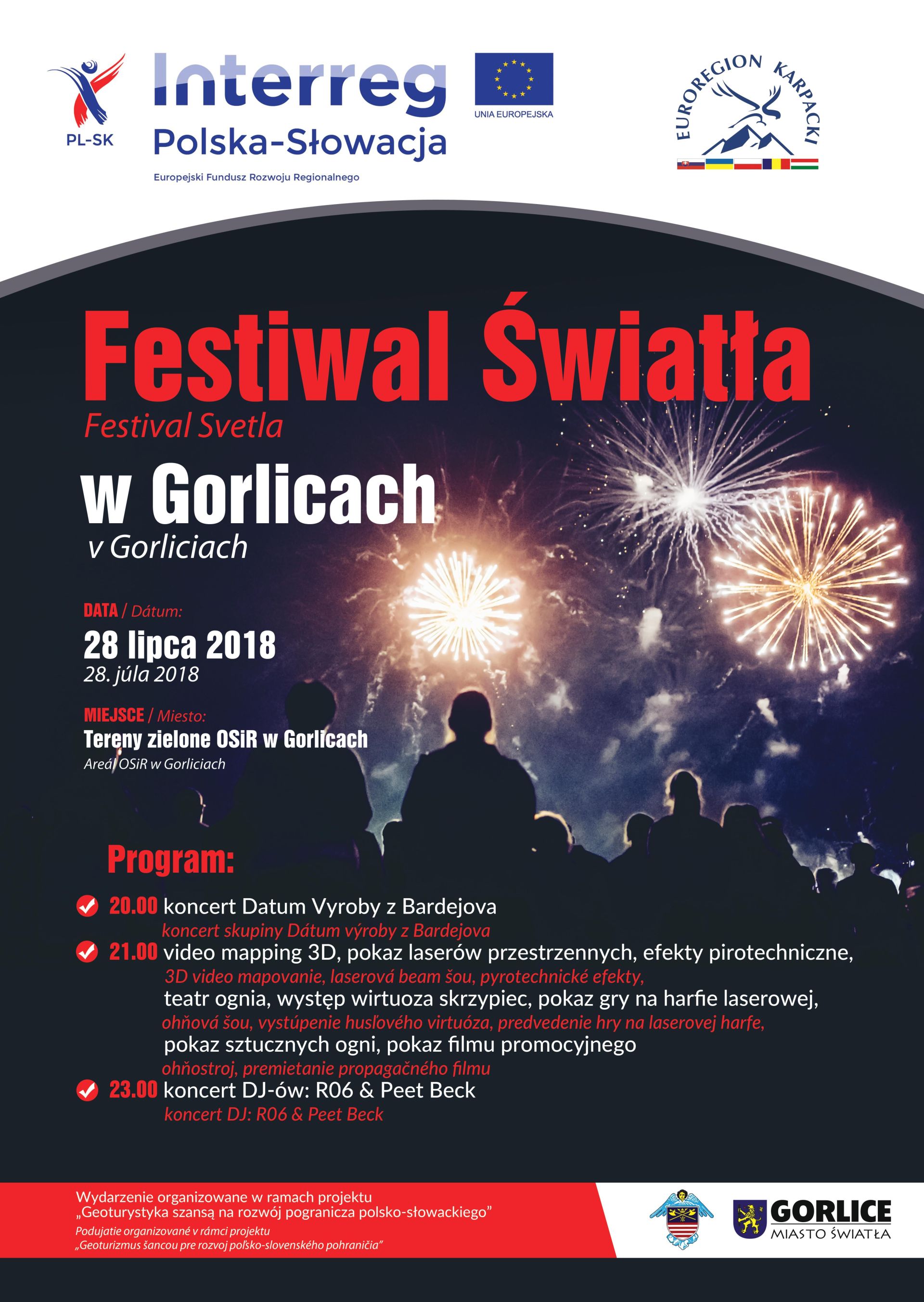 Zarówno Gorlice jak i Bardejów, ze względu na malownicze położenie w sercu polskich Karpat – na skraju Beskidu Niskiego, dysponują unikatowymi atrakcjami geoturystycznymi, opartymi na zasobach geologicznych. Gorlice to kolebka przemysłu naftowego, gdzie powstawały pierwsze na świecie kopanki i kopalnie ropy naftowej, a Bardejów to miejscowość uzdrowiskowa, ze źródłami wód mineralnych. Pogranicze polsko-słowackie w rejonie Gorlic i Bardejova to teren niepowtarzalny, mentalnie i językowo bliski, mający wspólną historię, kulturę i tradycję. Łączy nas również chęć rozwoju turystyki w naszym regionie, stąd wspólny projekt. Oprócz Festiwalu Światła w ramach projektu zorganizowany zostanie m.in. film i kampania promocyjna w mediach ogólnopolskich, parada z lampionami w Bardejovie, szkolenie turystyczne, publikacja z mapą atrakcji geoturystycznych.