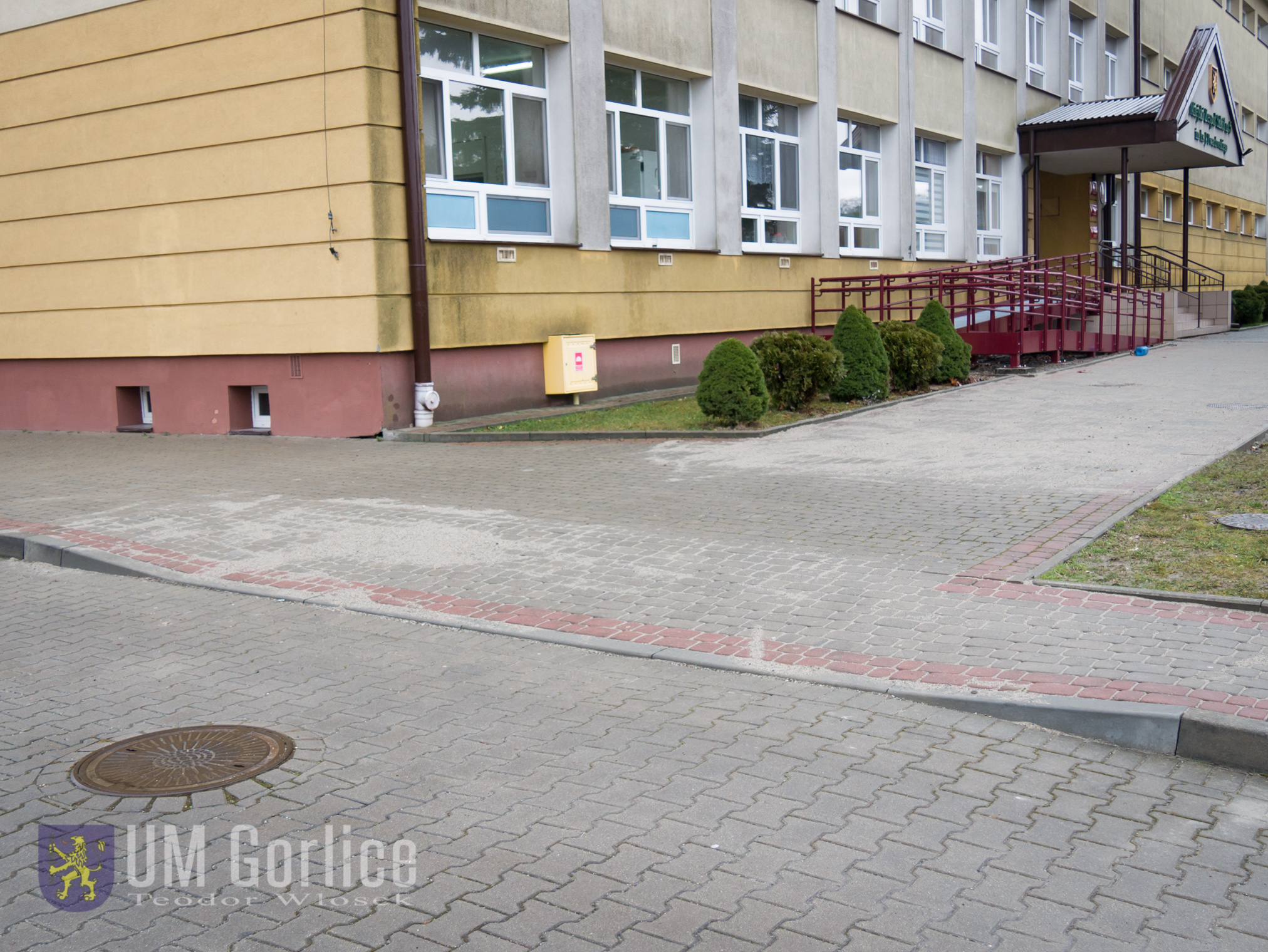 W ramach likwidacji barier obniżono też wysoki krawężnik przed budynkiem, tak aby nie stanowił już problemu dla osób niepełnosprawnych.